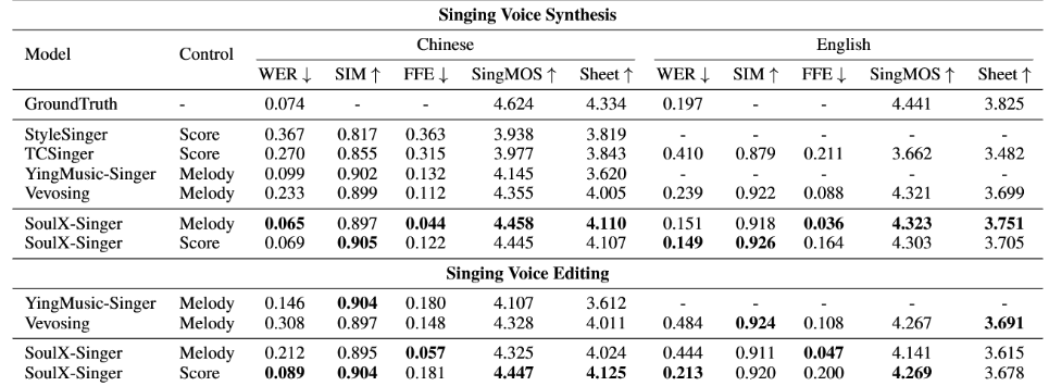 正在如许的布景下,Singing Voice Synthesis)全体进展相对迟缓。使得每一个音符的起止时间、音高(pitch)以及持续时长都可以或许被精确建模和节制。Soul AI团队已连续开源了播客语音合成模子SoulX-Podcast、及时数字人生成模子SoulX-FlashTalk!