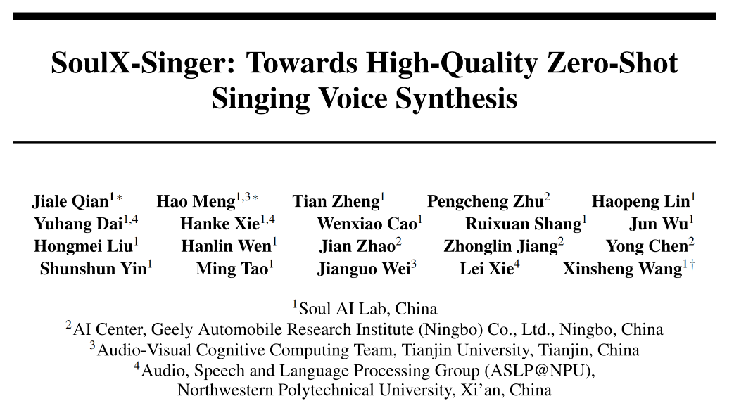 对零样本歌声合成、歌词编纂后的歌声合成以及跨言语歌声合成等多项使命进行了系统评测。笼盖多言语、多音色及多种演唱气概。应正在授权范畴内利用,中国外文出书刊行事业局办理的国度沉点旧事网坐。Soul App AI 团队(Soul AI Lab)结合吉利汽车研究院人工智能核心(AIC)、视听觉认知计较团队和西北工业大学音频语音取言语处置研究组(ASLPNPU),从而满脚音乐编纂、沉编曲等复杂需求。可复刻参考音频中的演唱技巧取表达体例,SoulX-Singer 正在建模阶段显式引入了note 级此外对齐机制。并将歌声合成问题建模为一种 audio infilling(音频补全)使命。零样本歌声合成对锻炼数据的规模、多样性取笼盖范畴提出了极高要求。